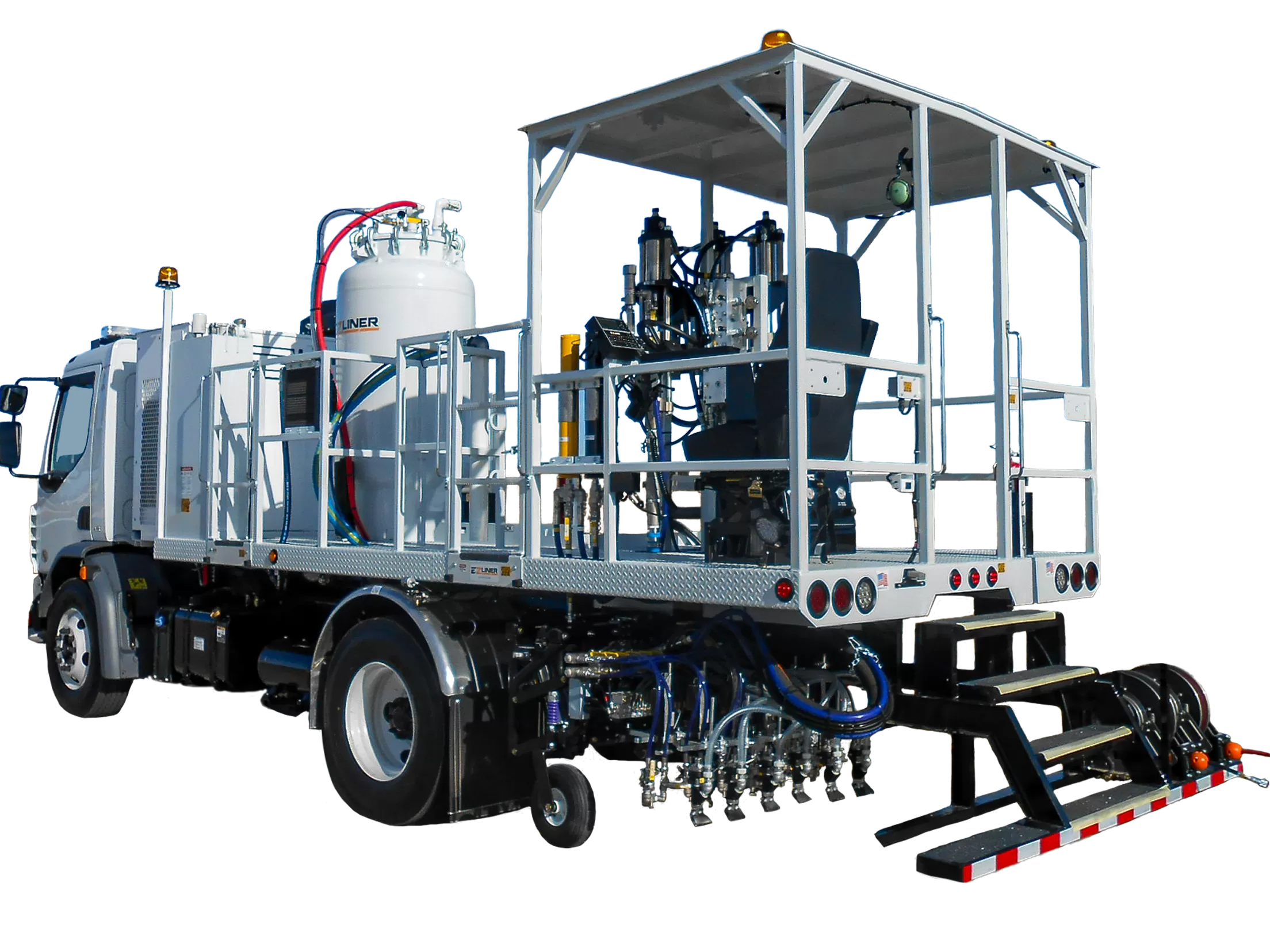 Peterbilt Model 220, TS-AL320 33,000lb GVWR 3,000lb Bead Capacity Six dual plumbed Graco paint guns 2 color system: black & white or yellow SPECIFICATIONS specifications are subject to change.